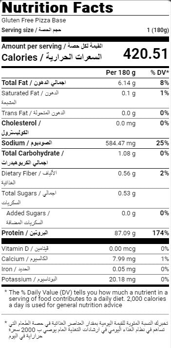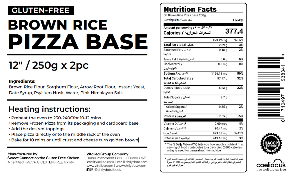 Finally a super healthy thin crust Pizza Base that is 100% Gluten-Free, Vegan and Nut-free! Ingredients: Brown Rice Flour, Sorghum Flour, Arrowroot Flour, Date Syrup, Psyllium Husk Yeast, Bottled water, Himalayan Salt. Delivery: Room