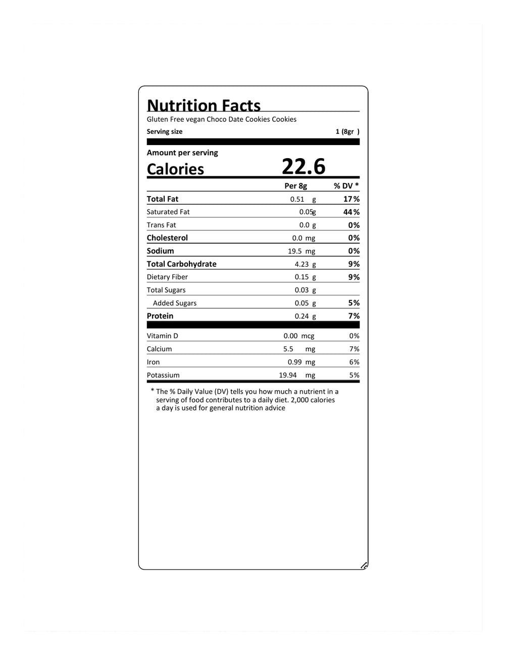 Satisfy your sweet cravings with our VEGAN ChocoDate Cookie. Made with dates and cocoa, it's a deliciously wholesome treat that's perfect for vegans and chocolate lovers alike.