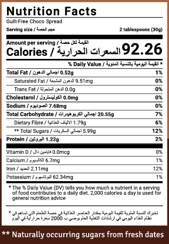Ingredients: Fresh dates, date syrup, pure cocoa and lemon juice.