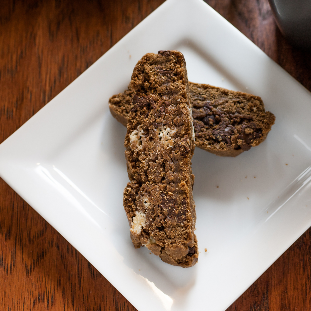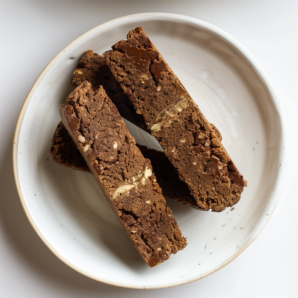 Gluten-free, Vegan and Processed Sugar-free Chocolate Biscotti. Perfect with a cup of coffee or tea.
