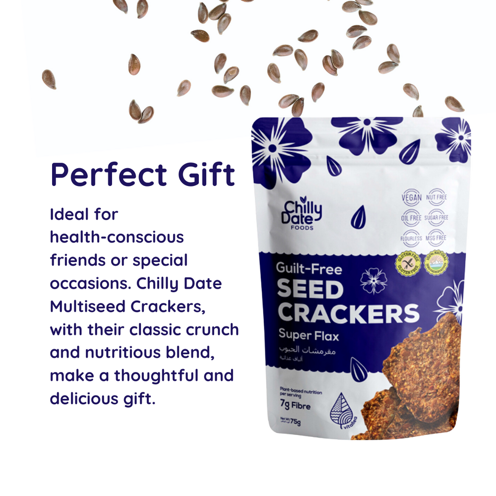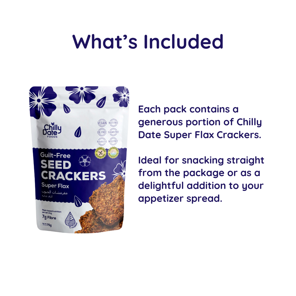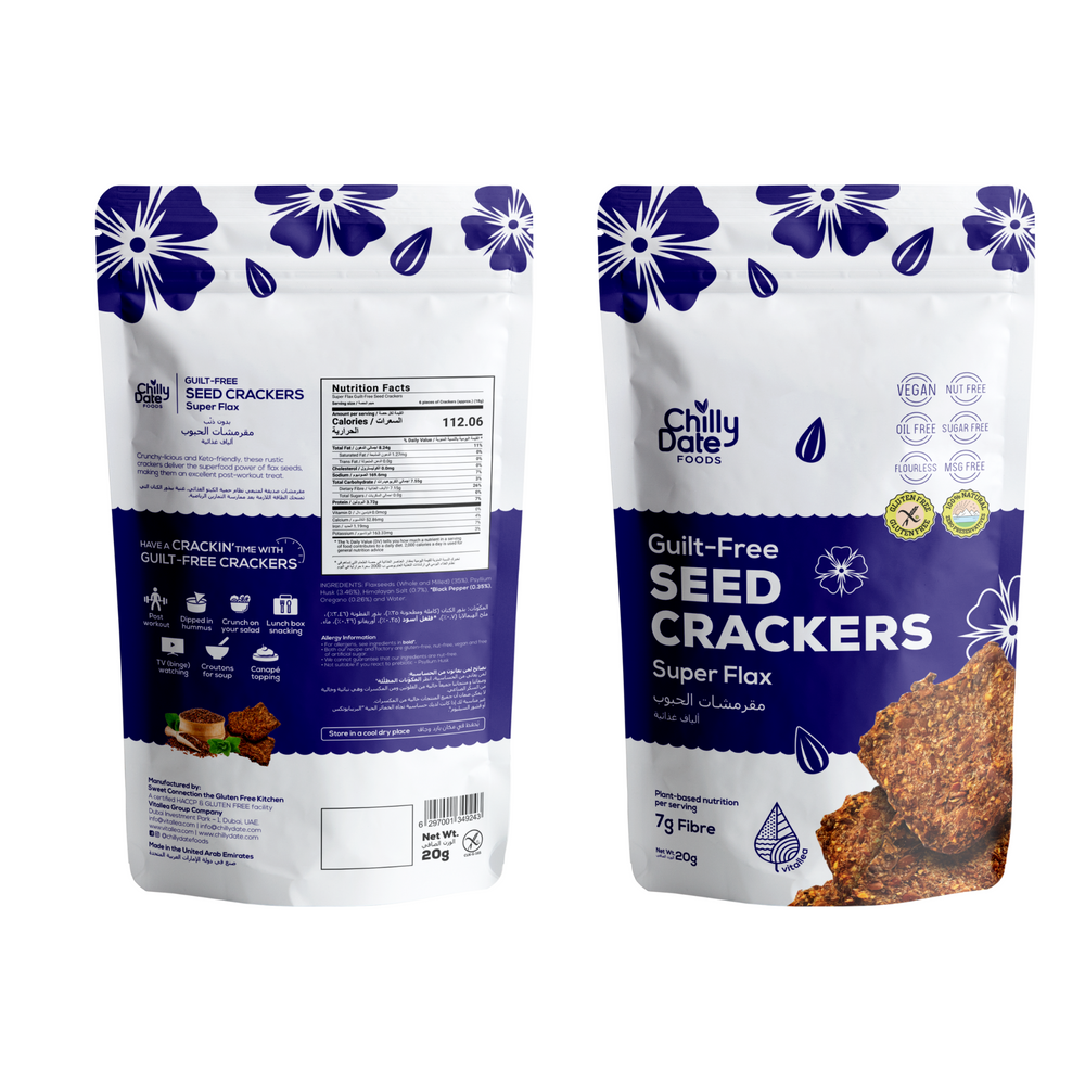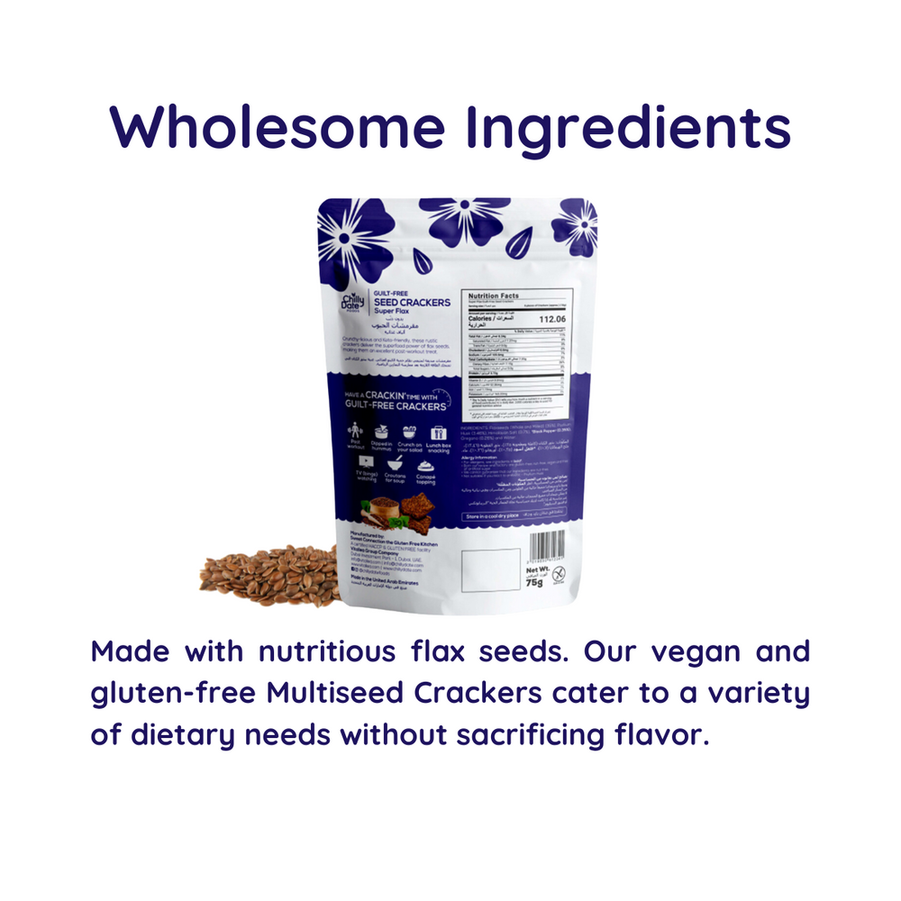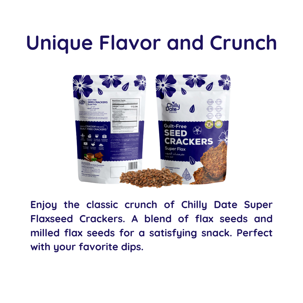 Crunch into the goodness of flaxseeds with our Super Flaxseed Crackers. Made with wholesome ingredients, they're perfect for snacking or pairing with your favorite dips.