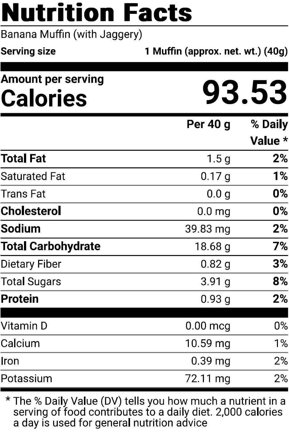 Ingredients: Fresh Banana, White Rice Flour, Brown Rice Flour, Arrowroot Flour, Organic Xanthan Gum, Cinnamon, Apple purees, Jaggery, Vanilla Extract, Extra Virgin Olive Oil.