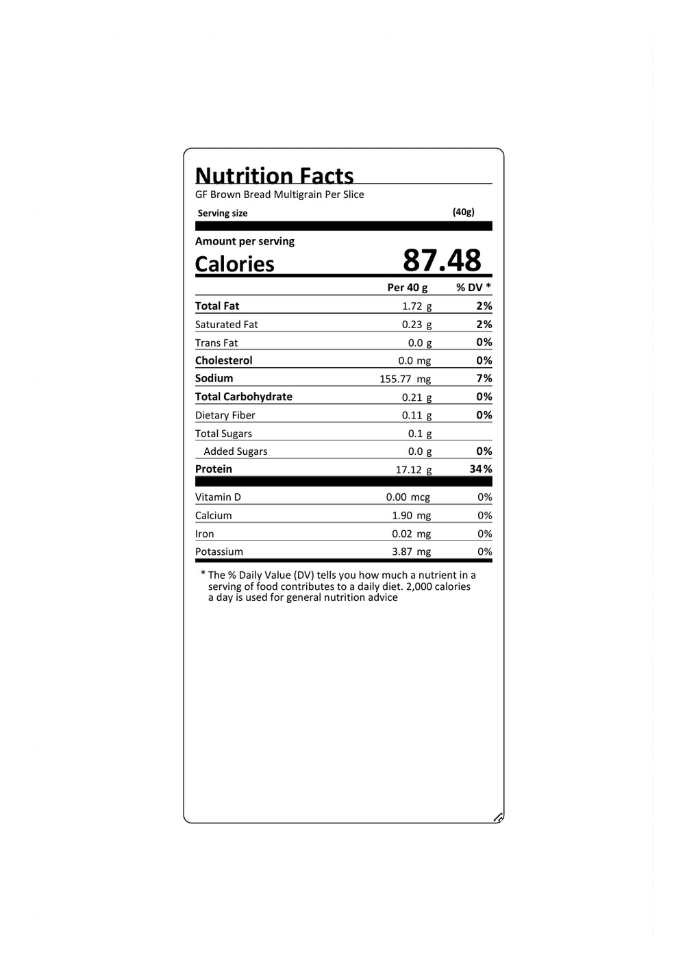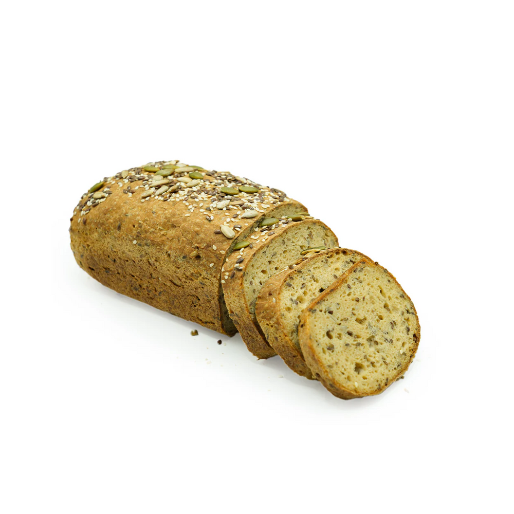 Ingredients: Maize Starch, Rice Flour, Soya Protein, Sugar, Psyllium Husk, Salt, Yeast Extract, Grape Concentrate, Lentils, Sunflower seeds, Pumpkin Seeds, Flax seeds, Sesame Seeds, Extra Virgin Olive Oil