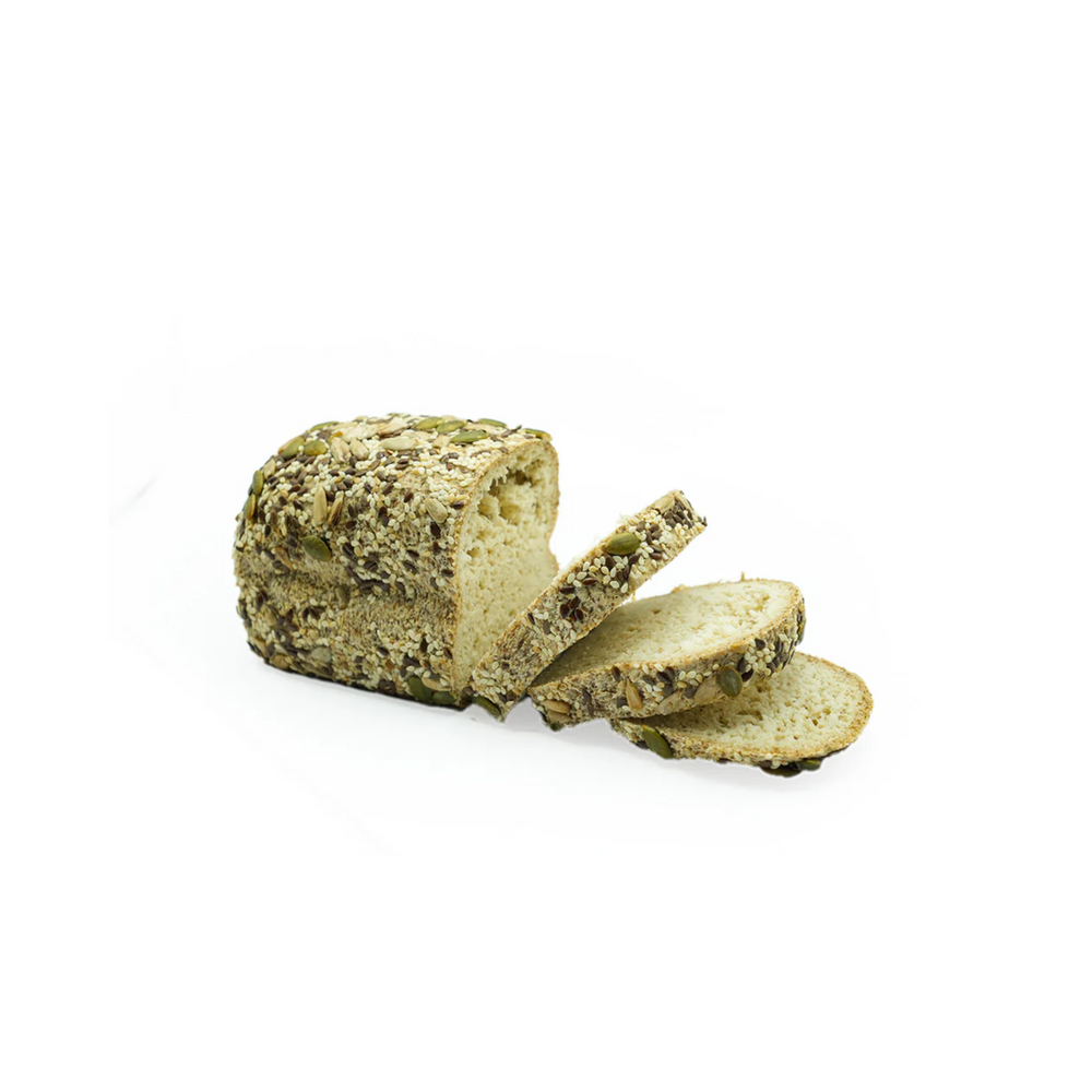 Ingredients: Almond Powder, Coconut Flour, Psyllium Husk, Pink Himalayan Salt, Extra Virgin Olive Oil, Apple Cider Vinegar, Baking Powder, Flax Seeds, Sunflower Seeds, Pumpkin Seeds, Sesame Seeds
