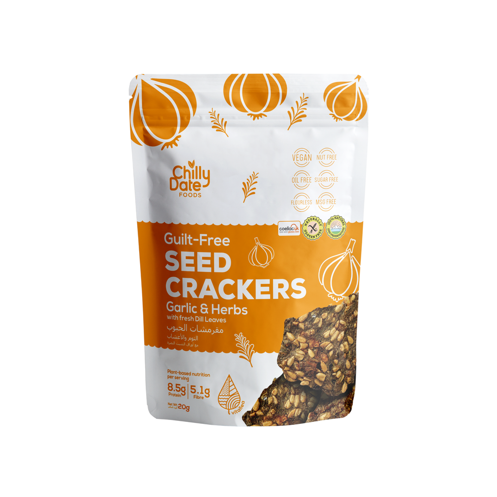 Hummus is packed with fiber and protein from the chickpeas, garlic, and healthy fats from the tahini and Olive oil. Tastes amazing and makes a wholesome snack when combined with our Seeds Crackers.