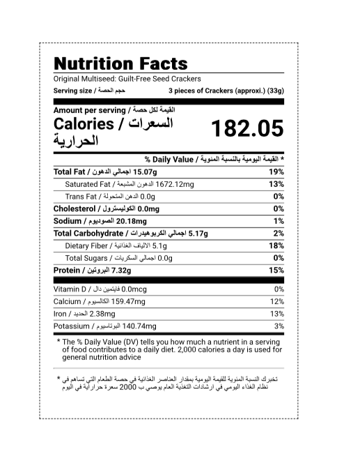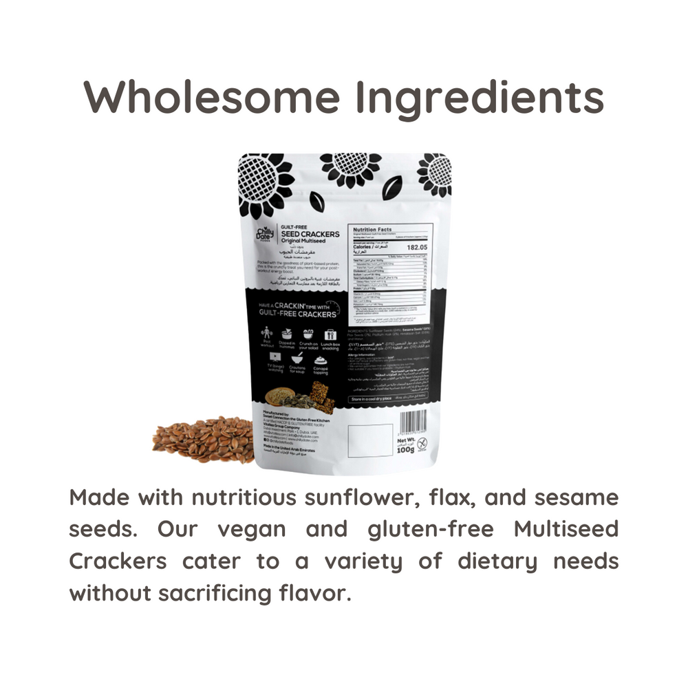 Enjoy the classic crunch of our Original Multiseed Crackers. Made with a blend of nutritious seeds, they're perfect for snacking or pairing with your favorite cheeses or dips. Ingredients: Sunflower