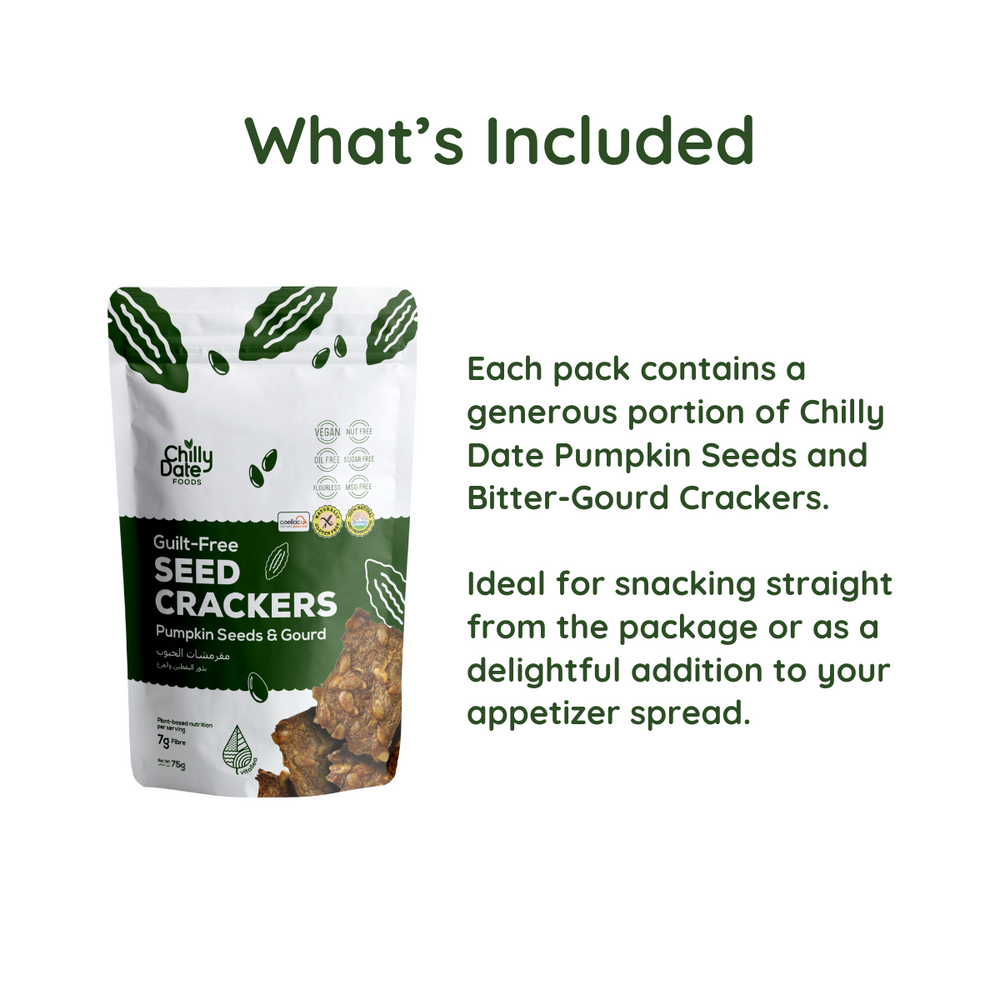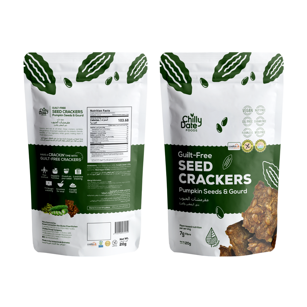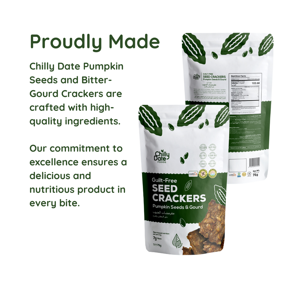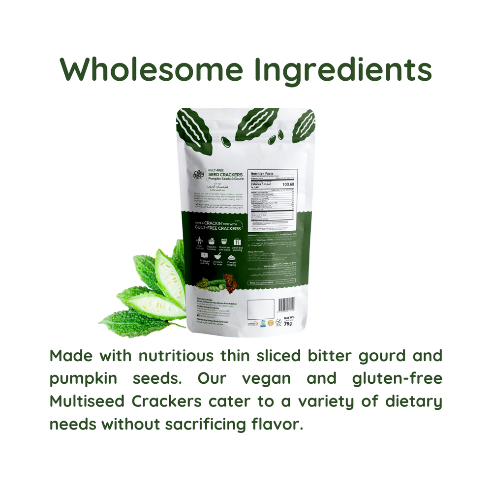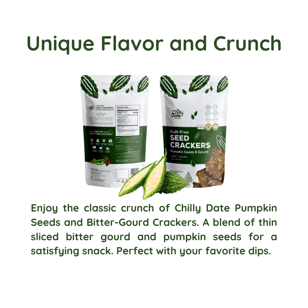 Experience the unique flavor combination of pumpkin seeds and bitter-gourd with our Pumpkin Seeds and Bitter-Gourd Crackers. Perfect for adding a savory crunch to your snacking routine.
