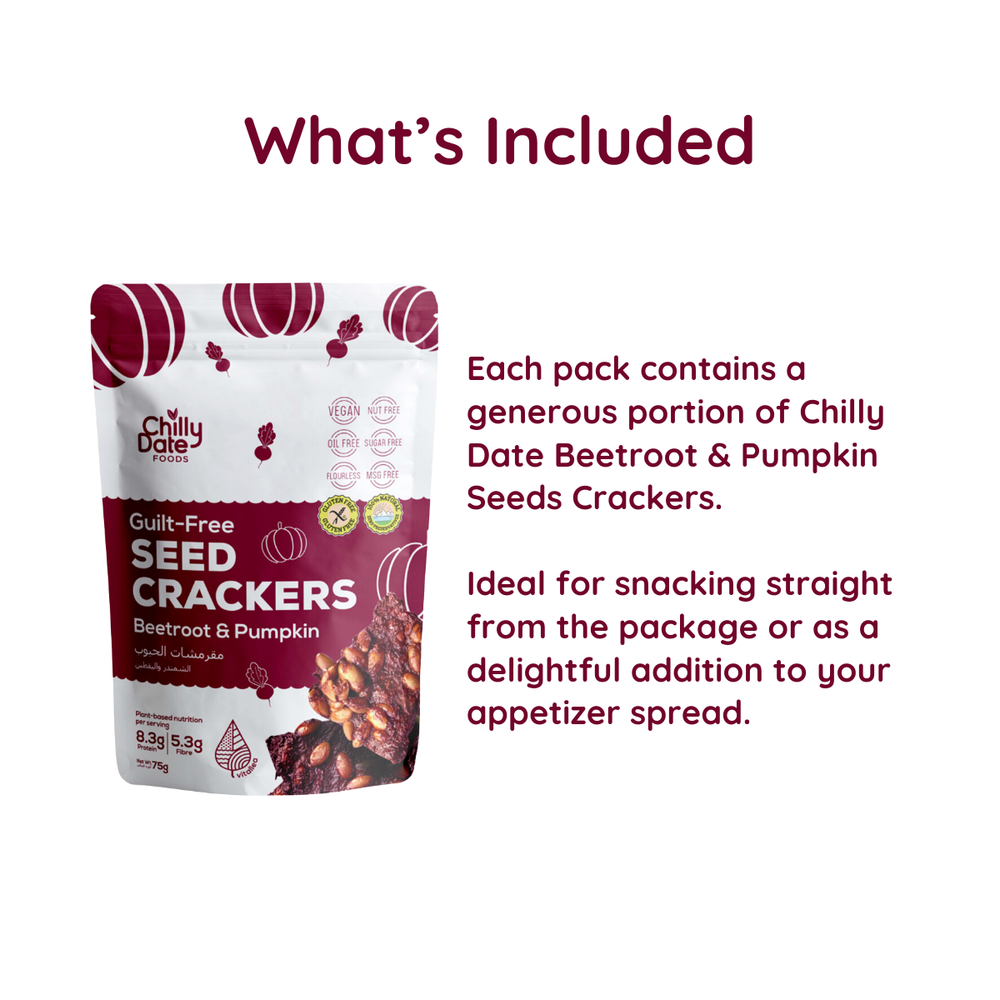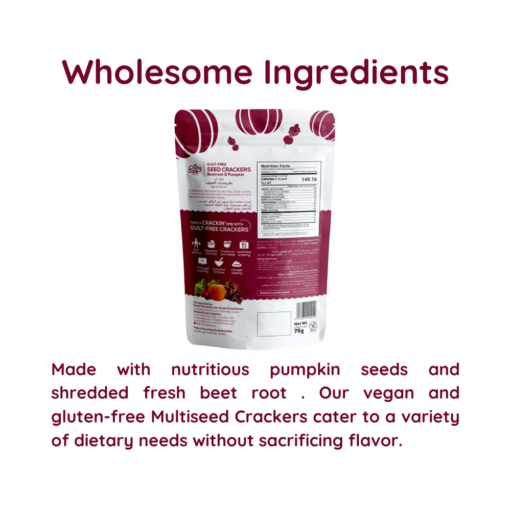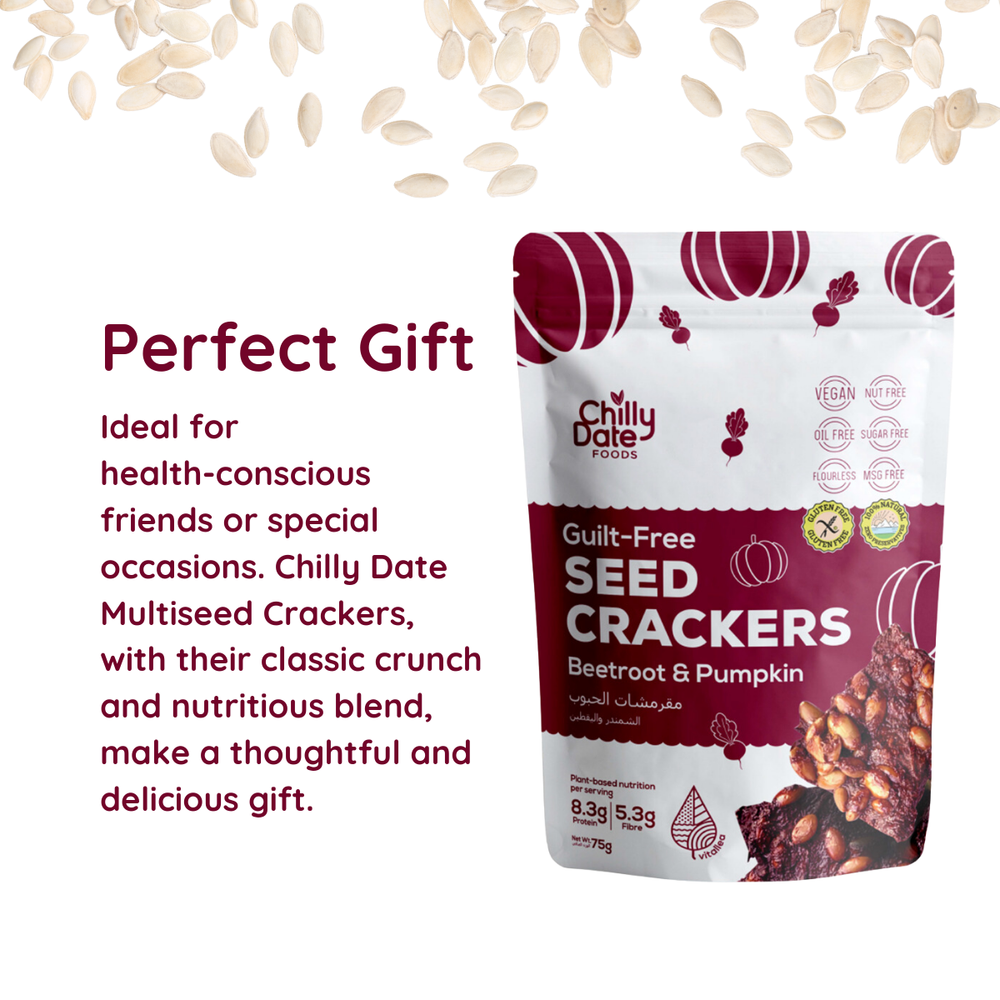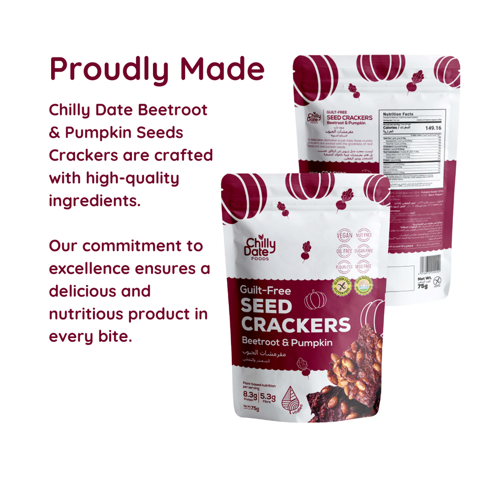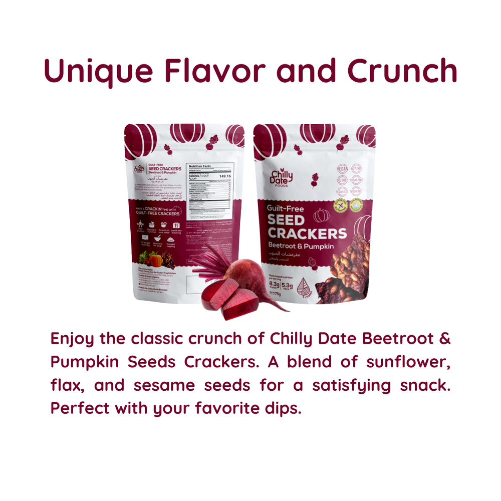 Crunch into the goodness of pumpkin seeds and beetroot with our Pumpkin Seeds & Beetroot Crackers. Perfect for adding a nutritious crunch to your snacking routine.