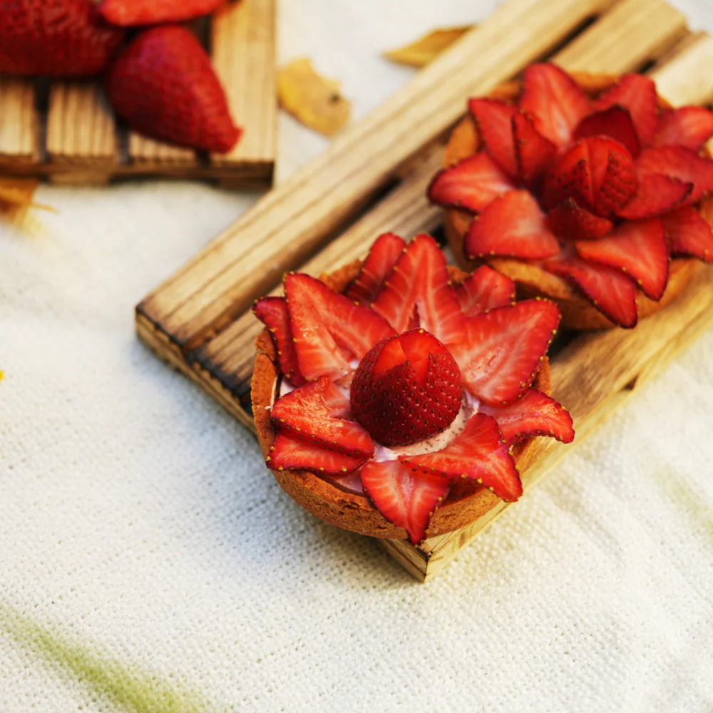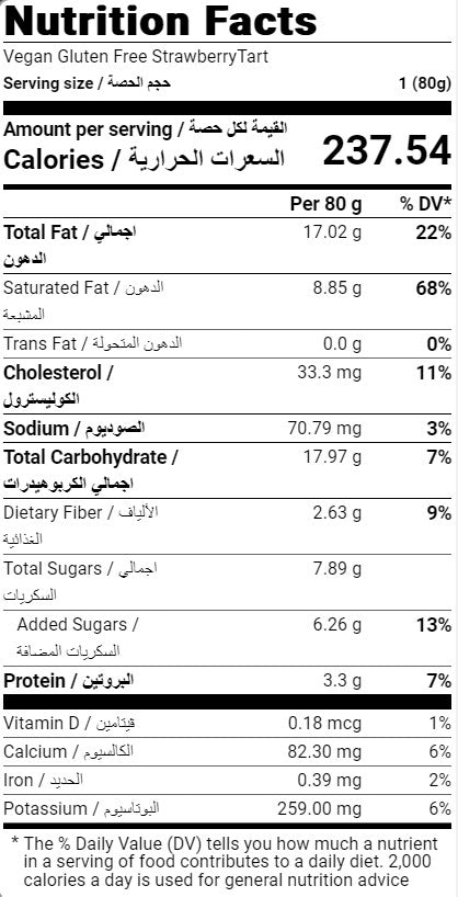 Ingredients: GF Flour, Almond Powder, Maple Syrup, Organic Xanthan Gum, Coconut Oil, Vegan Cream, Strawberry, Baking Powder.
